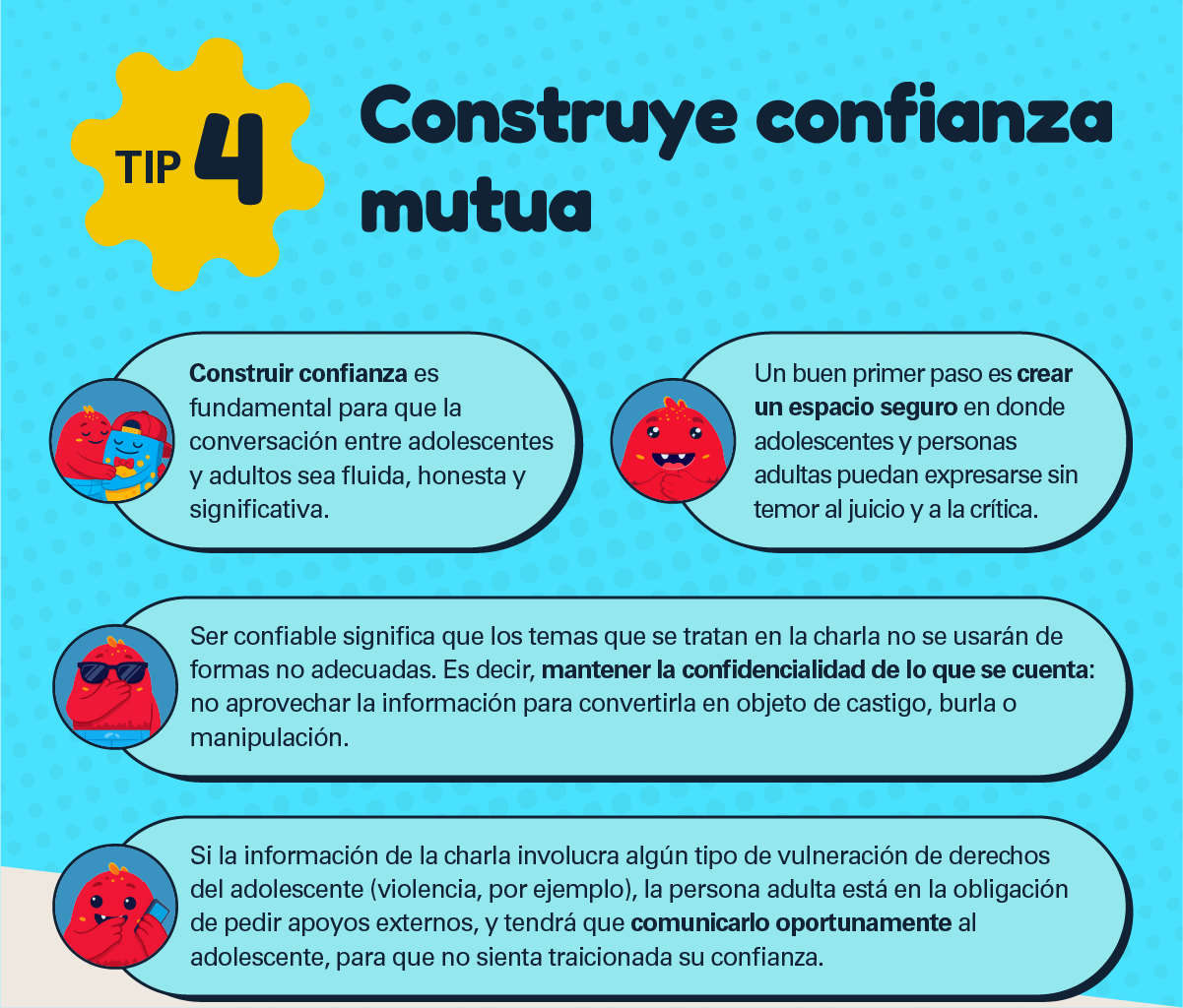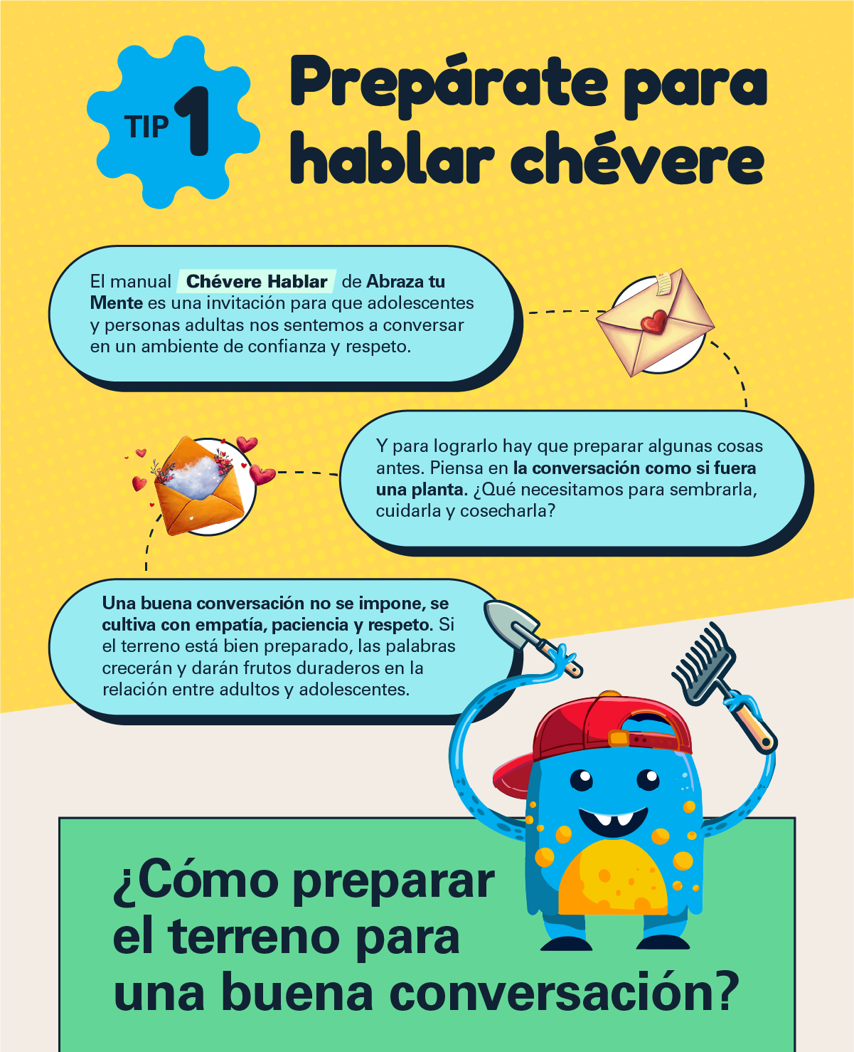 Antes de sembrar, hay que remover la tierra para que esté en condiciones favorables. Esto significa generar un ambiente seguro y libre de juicios, donde la persona adolescente sienta que puede expresarse sin miedo a ser criticado, ridiculizado, castigado o minimizado.
