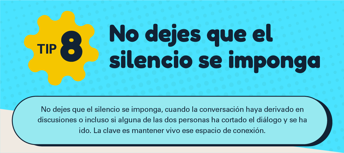 - No lo veas como un fracaso sino como parte del proceso: encuentra otro momento y forma para retomar la conversación.